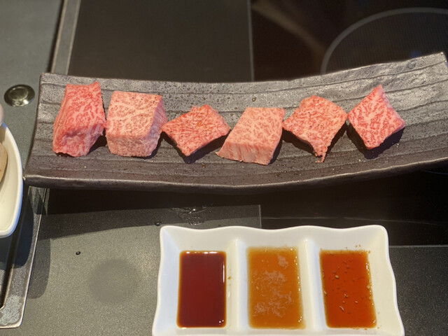 特上は霜降りをご提供いたします。 厚切りの肉をお好きな焼き加減でお召し上がりください。