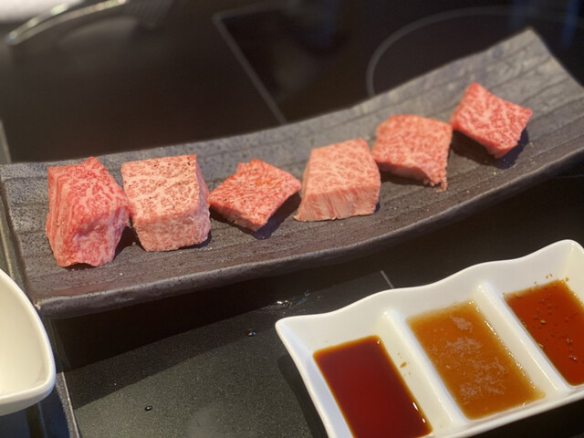 岐阜県の市場で取引されている飛騨牛の競りに出かけ、最飛び牛を一頭買いしております。全国和牛能力共進会において、内閣総理大臣賞、最優秀技能肉賞受賞の飛騨牛やお肉料理を、気軽に楽しんで頂けます。黒毛和牛しゃぶしゃぶ・鉄板焼きステーキ・すき焼き・牛肉の炙りにぎり等、きめ細かく柔らかでとろける様な旨みをご賞味下さい。落ちついた雰囲気の店内で、ご家族で、親しいご友人と語らい至福の時間をお過し下さい。