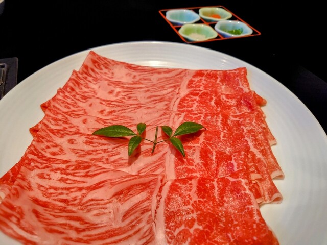 霜降り肉をサッと湯にくぐらせる。そのとろけるような食感をぜひ味わってください。