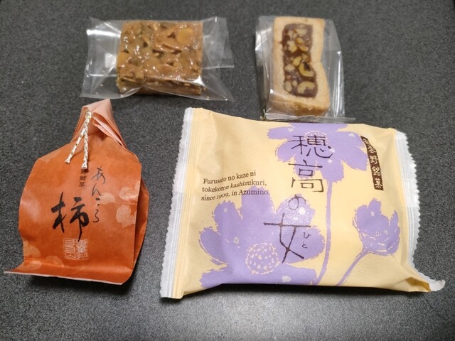 千国街道穂高宿の端っこにある和洋菓子屋さんです。 進物まで扱う結構大きなお店でした。 鎌倉紅谷のクルミっ子を彷彿させるクルミ菓子がありましたが、それよりもキャラメル部分は柔らか... 詳細を見る