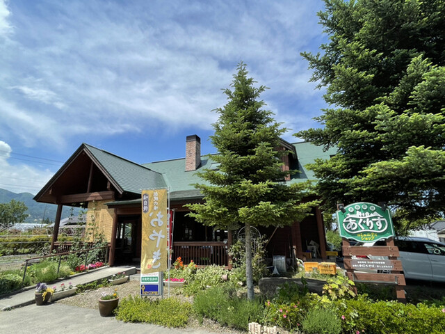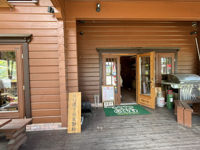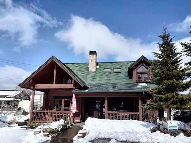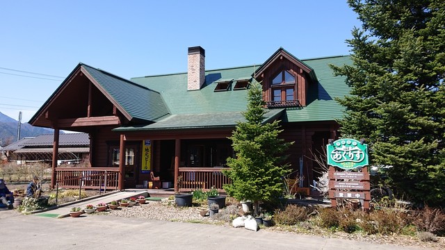 扉を開けると、本来なら自家栽培の野菜などの直売所らしいのですが、いまはオフシーズンなので、少し殺伐とした感じが残念。食堂のコーナーは左手にありました。外見通りログハウ...