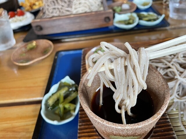 あまり良く調べずに訪問。 ログハウスのような外観のお店です。 店内も丸太の机と椅子。これが座りにくいのがちょっと残念だったかな。 蕎麦は自家栽培で石臼挽きの自家製粉だそうです... 詳細を見る