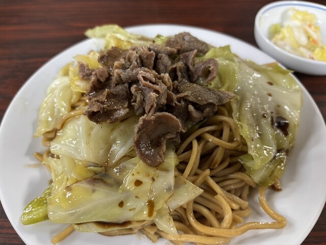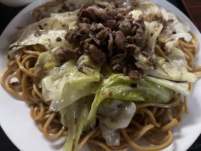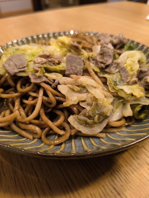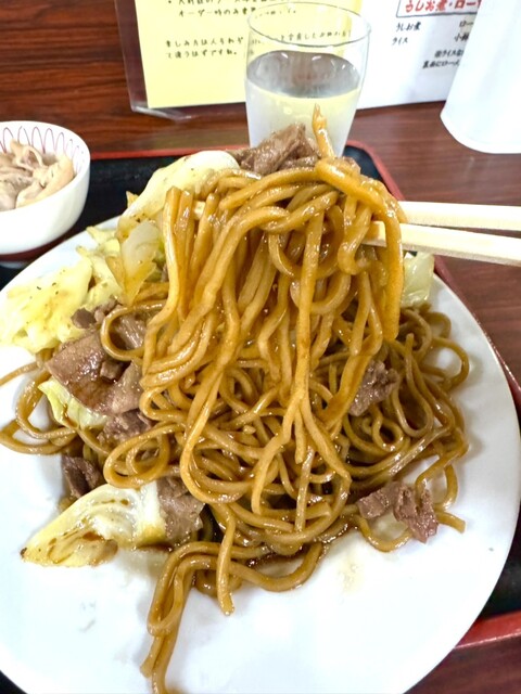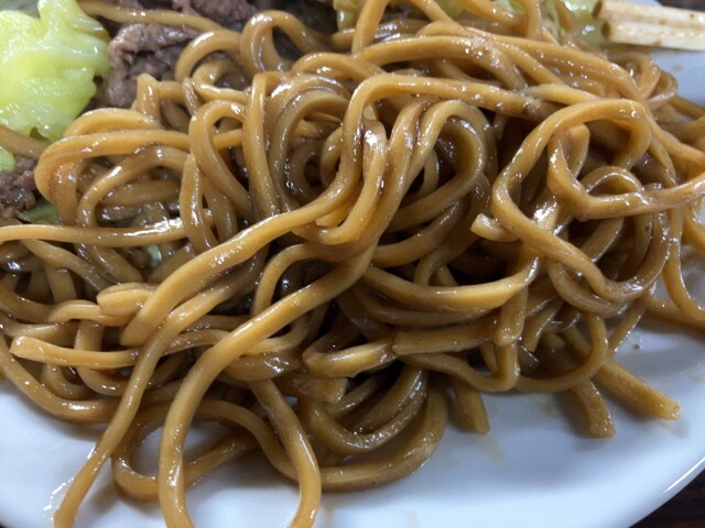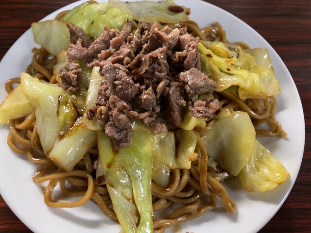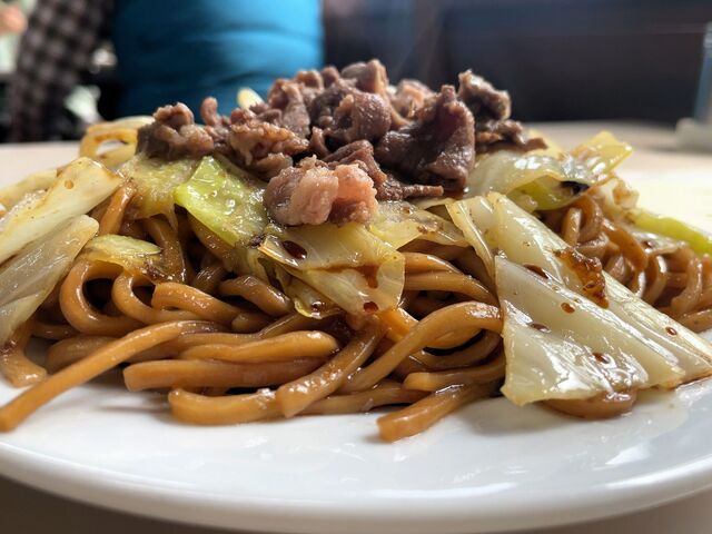 羊肉が使われた焼きそば。