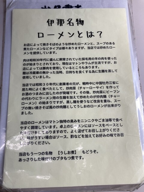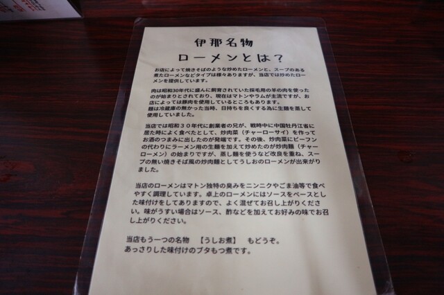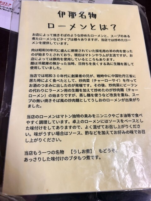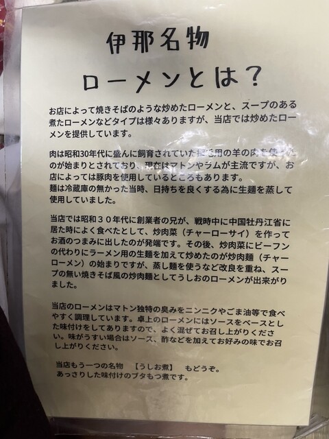 長野県伊那市のソウルフードであるローメンで有名なお店です。