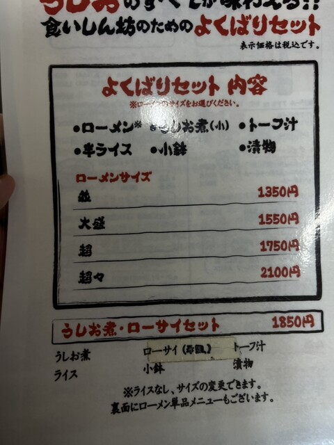 ローメン、ご飯、お新香、おでん、うしお煮、トーフ汁ととてもボリューミーながら1350円とコスパもよかったです。ローメンはその...
