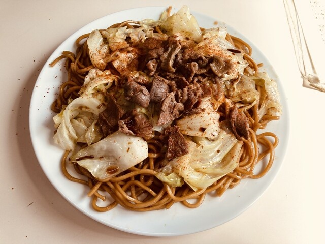 いわゆる焼きそばで、たっぷりキャベツとマトン肉がのっている。あっさり味付けで提供されるので、自分好みにカスタマイズするのも楽しみの1つ。お酢やマヨネーズ、一味やカレー粉等で自分好みの味を追求してみては...