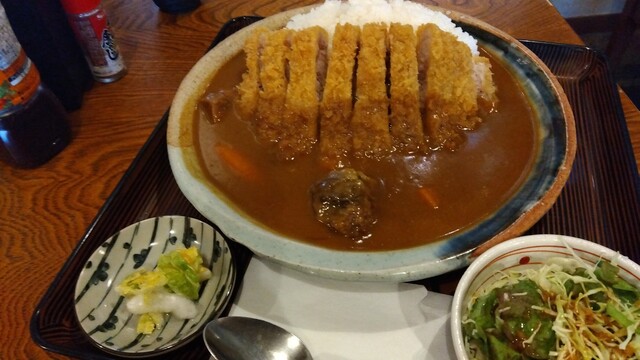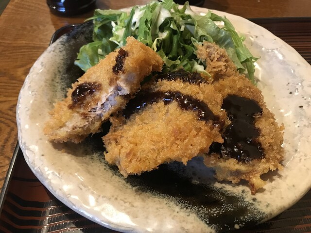 ヒレカツはデンと3切れ、ご飯、豚汁、香の物が野沢菜漬けなのは郷土食が出ています。ソースはカゴメの市販品がそのまま出て来るおおらかさなり。しゃぶしゃぶ・すき焼きが本職なので牛肉がメインな...