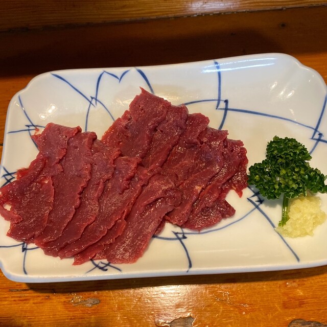 馬肉を使った料理が様々ラインナップされており、桜鍋や焼肉も気になったが、一人での訪問だったことと時間が閉店間際だったことから断念。