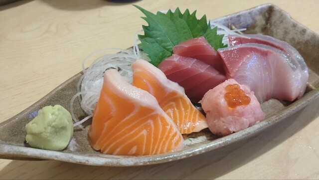 刺し身は千葉県民が普通に買える鮮度と変わらなくて、信州出身者としては、半世紀前にはマグロ以外には無かったな刺し身…って思う。穴子の天ぷらもまずまず行ける。謎の紅葉おろしのは多くて飽きる。サンマのアヒージョは企画倒れ...