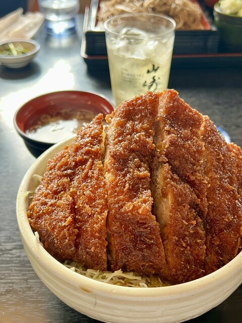 11時きっかりにオープンし、山崎ハイボールに馬刺し、そして、ロースソースかつ丼(ご飯大盛り)を注文。大盛りは久々だ。