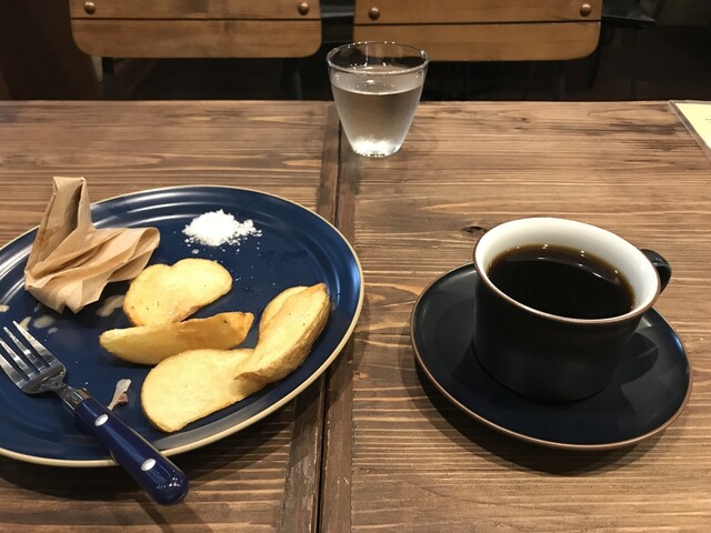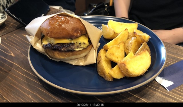 今回は昼の訪問、ネットで画像みて気になっていた国産牛100%のハンバーガー&フライドポテト:1,000円に自家焙煎珈琲(各500円)よりアンジェリカスプレモ(コロンビア)をチョイスしました。まずはバーガーから...