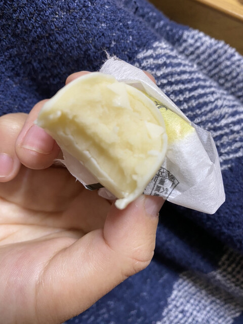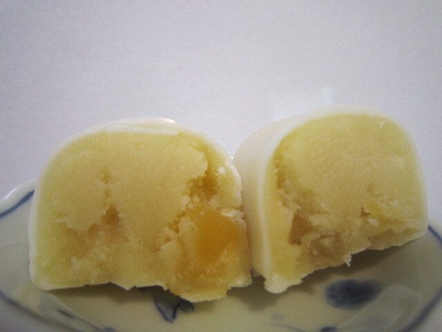 しっとりなめらかな餡がホワイトチョコレートで包まれていて、素朴で懐かしい味わい。