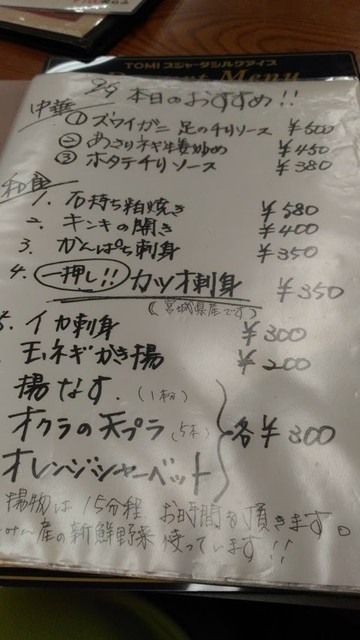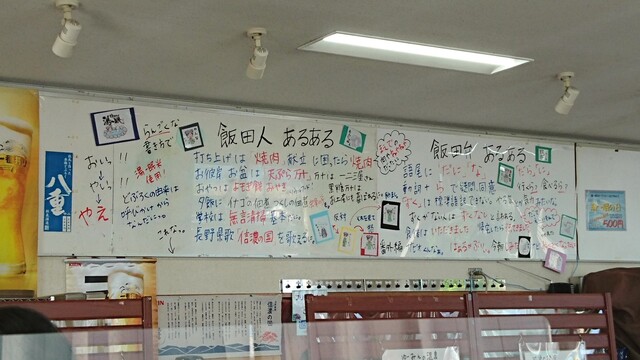 飯田インターから近い温浴施設のレストラン。宿泊も出来るので、泊まり客、湯上がり客、食事客が混在。日曜日の夜は、宿泊客のみでありました。中華メインですが、お勧め刺身、焼き魚も並びます。湯上がりですので、...