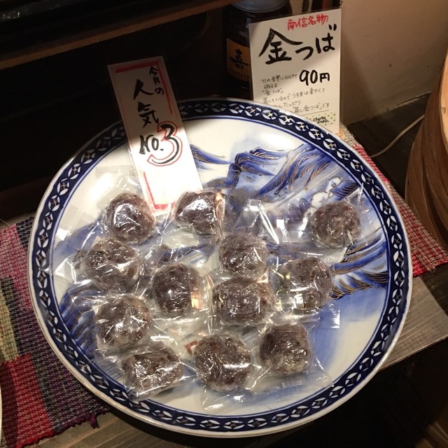 木曽福島宿駐車場に面したちょっとした蔵造りのお店、2棟あって、片側がお店、お隣にイートインスペースが完備されています。お菓子はいわゆる饅頭・餅菓子の和生菓子がメイン、1個:百円台のものばかりで買い易いです。街歩きの休憩にこうした和菓子はピッタリ、カワイイ笑い顔が象られた薯蕷饅頭とそば饅頭、すあま(白)を購入しました。どれもこぶりなので3個位はペロリと行けます。