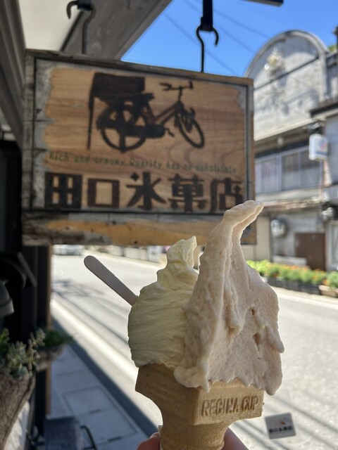 休日午前中に訪店 田ぐちのジェラート部門 店内でも食べるスペースがちょっとありますね! ダブル480円 一見普通の価格かなと思ったが、 結構しっかり盛り付けてくれます... 詳細を見る