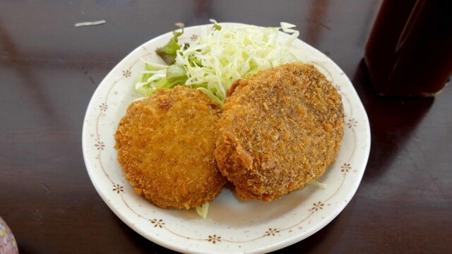 カラッと揚がっていて旨い!惣菜と漬物付きです。