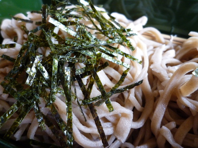 いつも、最初にそばを何もつけずに食べるので、ミョウガもお茶も眺めるだけでした。