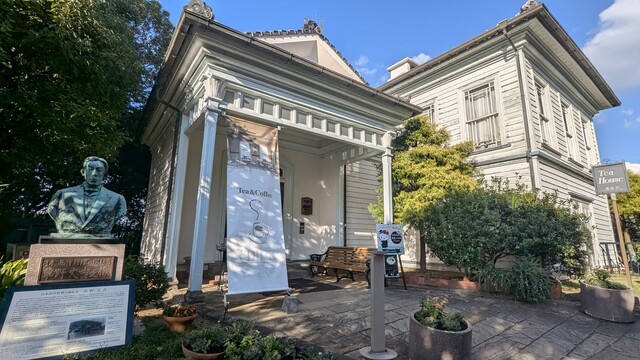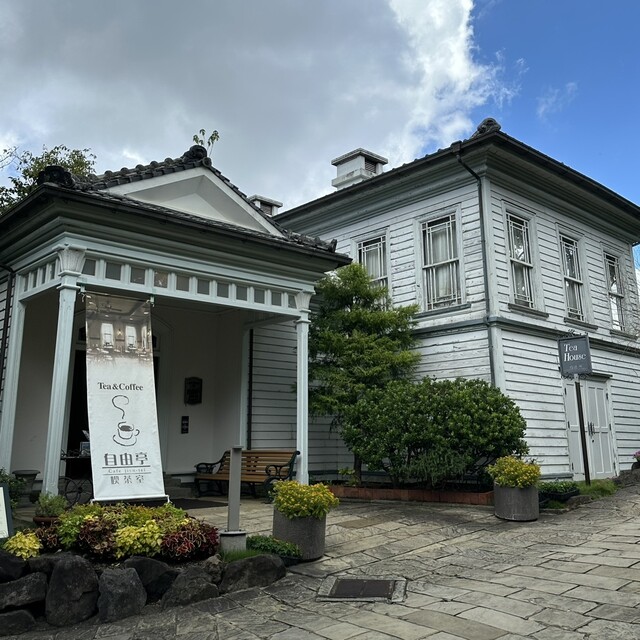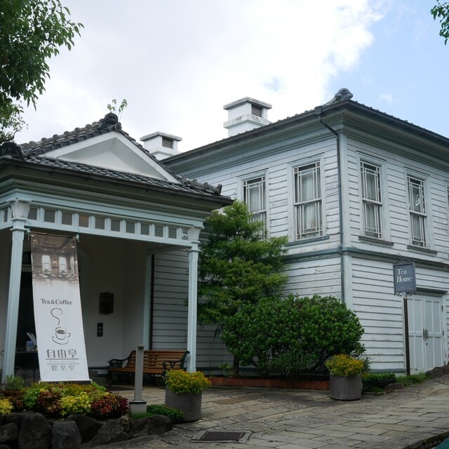長崎の観光名所「グラバー園」の中にある、日本人シェフによる初めての西洋レストラン「自由亭」跡に設けられたカフェ。