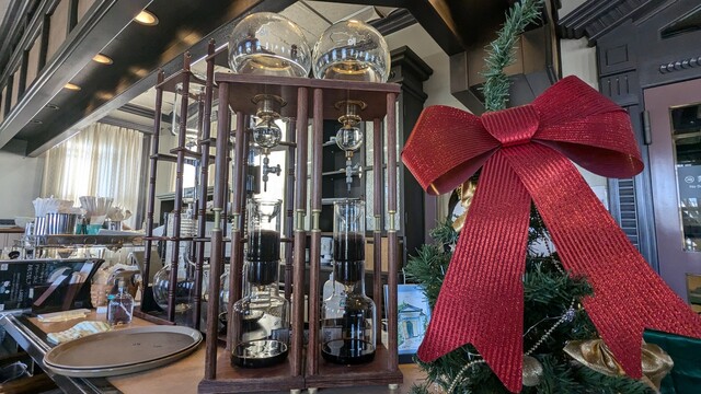 24時間かけて、水で一滴ずつ抽出された薫り高く濃厚なコーヒーで、お店のカウンターにポタポタと抽出している様子が見られます。