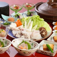 長崎産の高級天然クエ鍋にクエ刺身などの豪華クエ尽くしコース。 コラーゲンたっぷりの極上の味わいをご堪能ください。