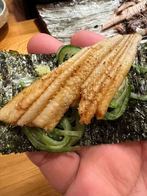 前評判を伺い、2週間ほど前に予約をして伺いましたが大正解!大将をはじめとしてスタッフの皆さん、気配りに長けており、合間合間に話しかけてくださり、とても楽しく美味しい時間を過ごさせていただきました。脂っぽい魚が苦手なため、それを事前に伝え、適当に刺身を出していただきました。カラスミもいただきながら地酒を飲み、大将おすすめの穴子を海苔に巻いていただきましたがこれが絶品!穴子がほろほろと口の中でほぐれ...