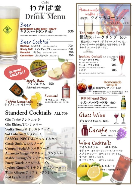 | ドリンク | 焼酎あり、ワインあり、カクテルあり、カクテルにこだわる |