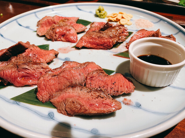長崎旅行中に、2軒目として「赤目(AKAME)」に立ち寄ったよ。観光通駅から徒歩約1分とアクセス抜群で、店内は鉄板焼きの香ばしい匂いが漂っていた。