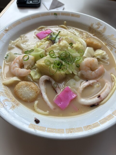 海鮮ちゃんぽんに半チャーハン、餃子を注文。