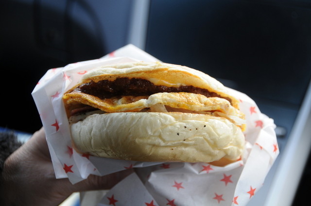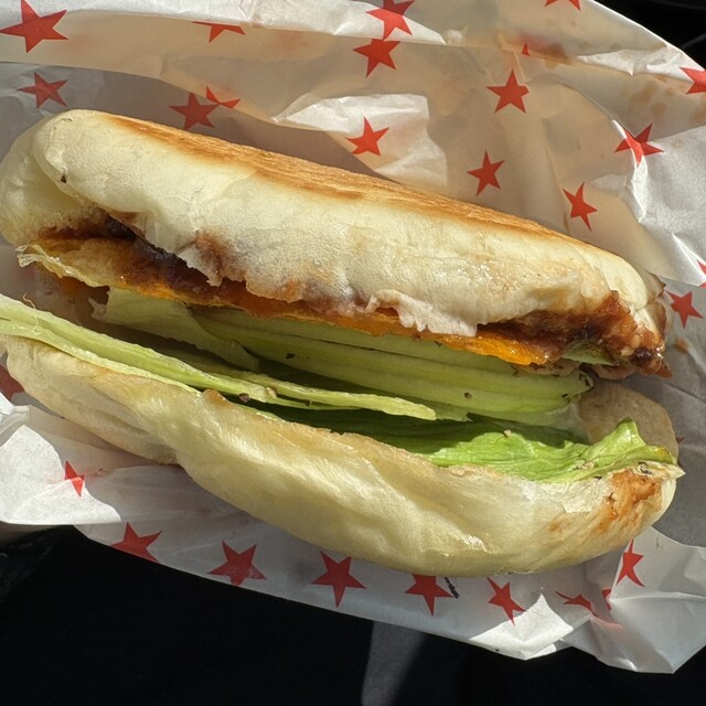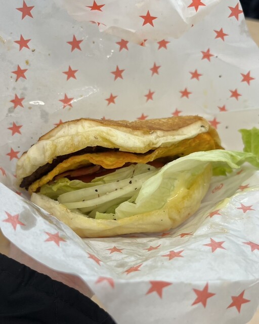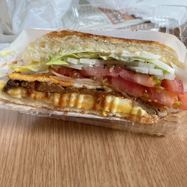 パニーニのような幅広で薄いバンズなのでサイズはありながらも厚みはないので食べ易い。