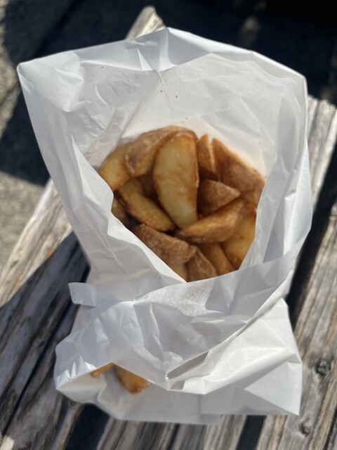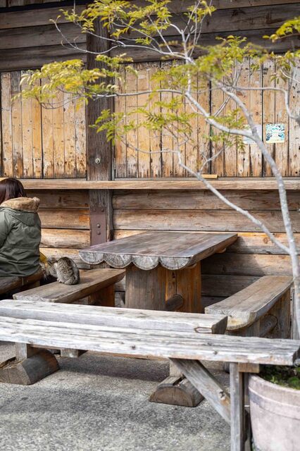 基本はテイクアウトなのですが屋外のテーブルやベンチでいただくこともできます。