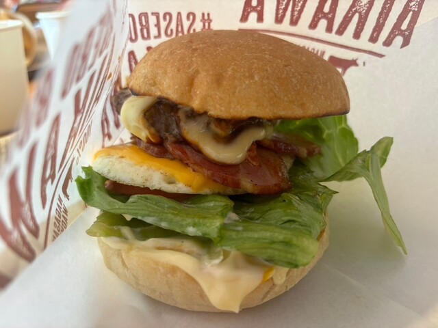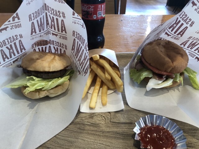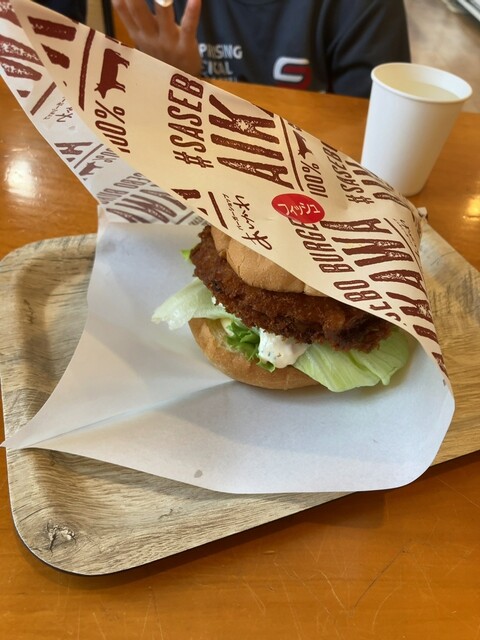 佐世保バーガーとは? 知人からの誘いで何の気なしに食すことに。 どうやら肉屋で営業しているバーガーショップのようで同施設に肉屋とステーキショップもある模様。 券売機で購入後に空いている席に着席し待つ。 テイクアウト客も多く、非常に混雑していたものの40分くらい待ってありついたバーガー... 詳細を見る