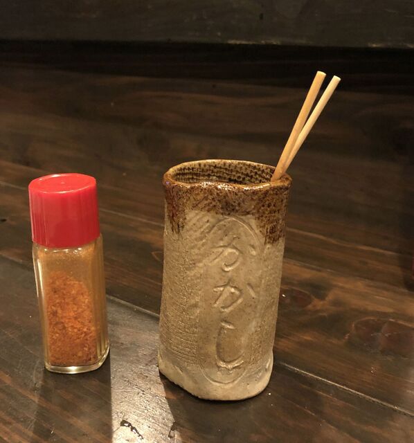 そしてメニュー表を見て楽しみにしていた「串焼き」を注文です。お腹はすでにかなりいい感じなので5本選ぶことにしました。「皮」「砂ずり」「レバー」「ねぎま」「つくね」のチョイスです。「レバー」以外は「塩」で・・と注文すると「つくね」は「タレ」がオススメ・・とママさん、注文確定しました。
