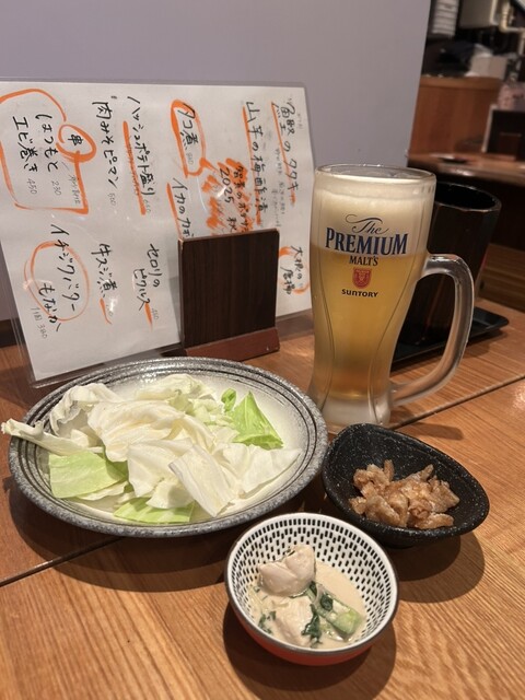 生ビールは小(400円)、中(600円)、大(1100円)があり、大は中の2倍以上はありそうなジョッキでお得感あり。