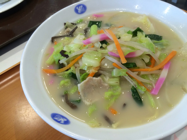 ちゃんぽんは器が大きくてスープがたっぷり,スープは甘めで旨味十分ですね。