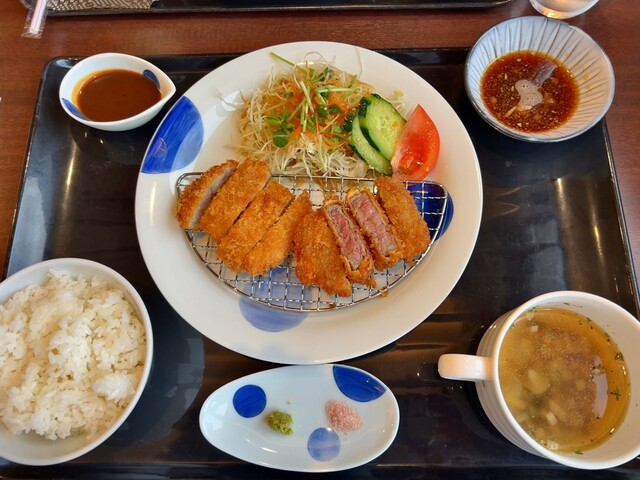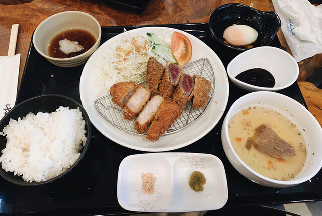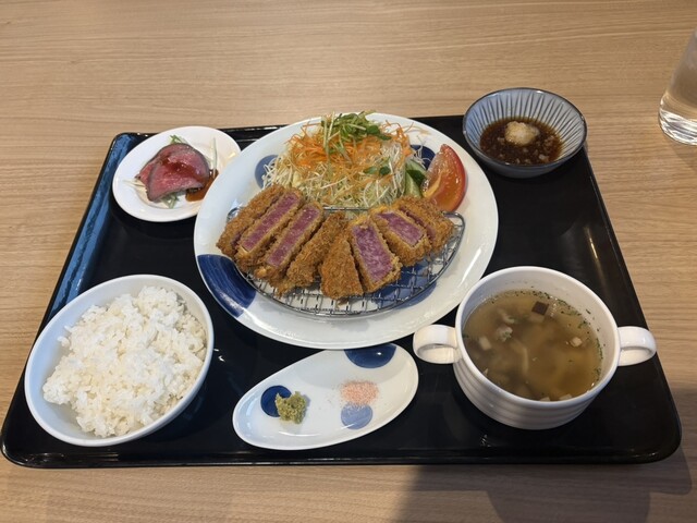ハンバーガーの気分ではなかったので、諦めながらも車に乗ると牛かつもやってるらしく店内へ走る。