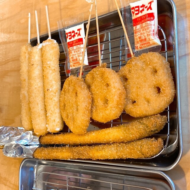 サクサク衣のアツアツの串カツに、秘伝のソースをたっぷりつけて頬張れば、まさに大阪伝統の味!