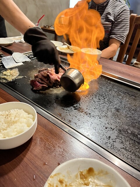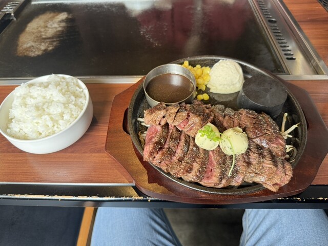 商店街を歩いてると、中休み無しで空いていたので立ち寄りました!ステーキをたらふく食べてお好みも食べて腹いっぱいです