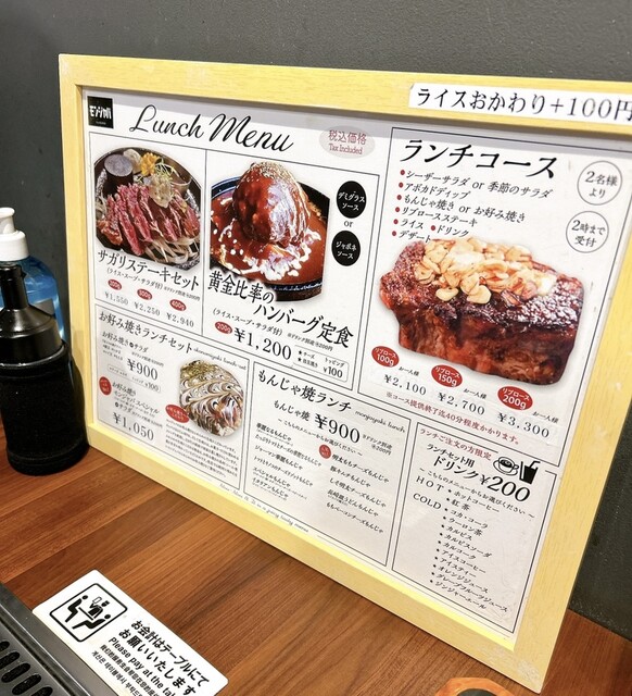 ランチでリブローズともんじゃ、ハンバーグをいただきました。どれも美味しかったです。