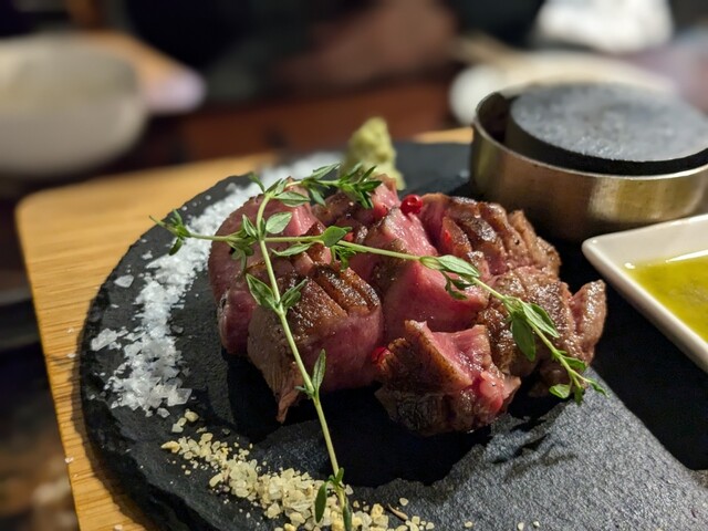 メニューは、本当にお酒にピッタリ合うメニューばかりで、目の前でお肉を焼いてくれるサービスがよかったです。また、来たいお店のひとつです。
