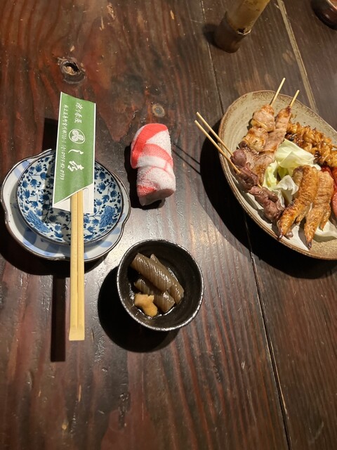 ペンションもやってるところの 1階の居酒屋で なんでも美味いっていうことで お客さんと奥さんに連れてきてもらったとこな 19時前ぐらいに3人で予約してくれてて 靴を脱いで お店に入る 席に着くと 付き出しのこんにゃくと 串物ををセットしてくれてある ・ずり ・手... 詳細を見る