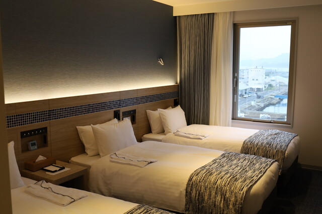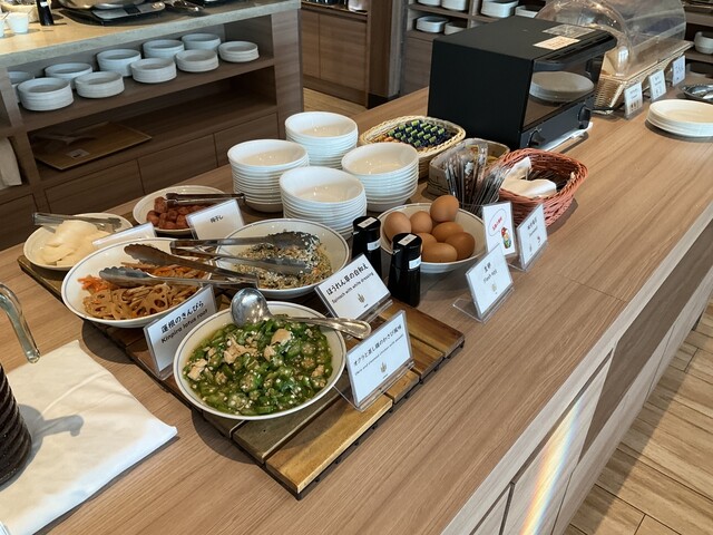 今回、こちらのホテルにお世話になりました。上層階のお部屋で眺望も良く、お部屋も広く使い勝手も良かったです。朝食は、バイキング形式になっていて、6時30分からのOPENに合わせてお邪魔しました。五島産...