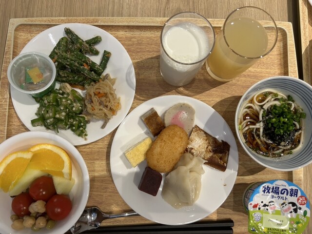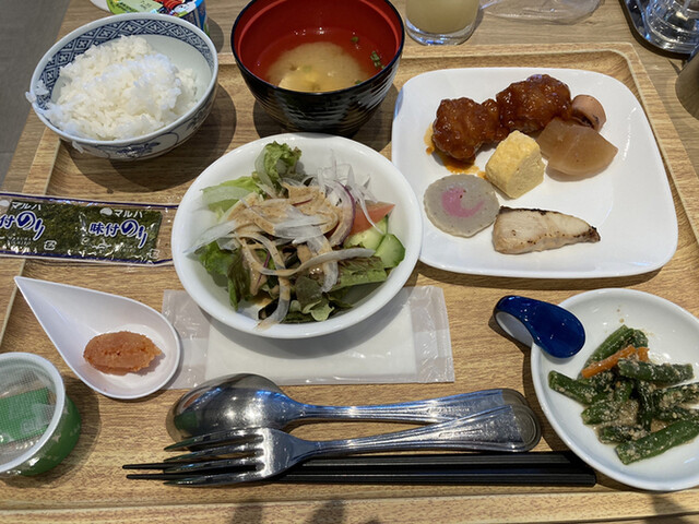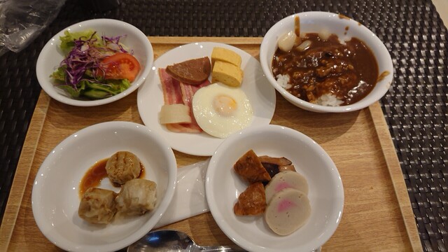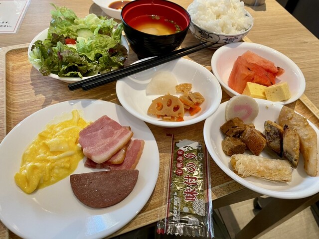 朝食はバイキング。量としては地方のビジホのバイキングという感じですが、やはり長崎名物の角煮まんじゅうや角煮、かまぼこ、そして五島名物の五島うそんなどが充実しています。