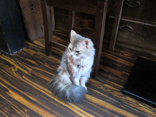 奈良市の、いわゆる「ならまち」にある日本の猫カフェ史に残るお店で、日本初の猫カフェ「猫の時間」さんとほぼ同時期にできたそうです。もともと骨董品屋さんだったのが猫のいる珈琲店に業態変更し、そして今に至るとのことです。 |
