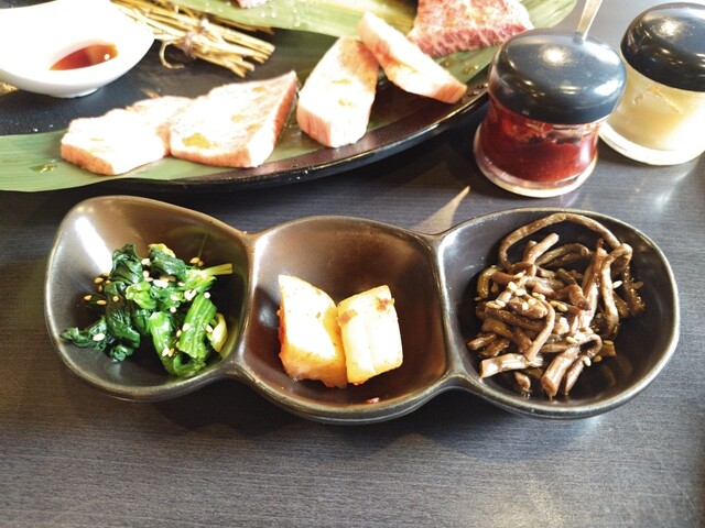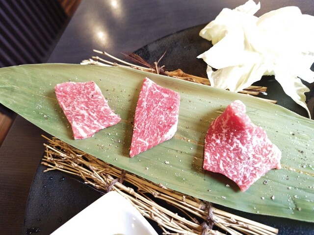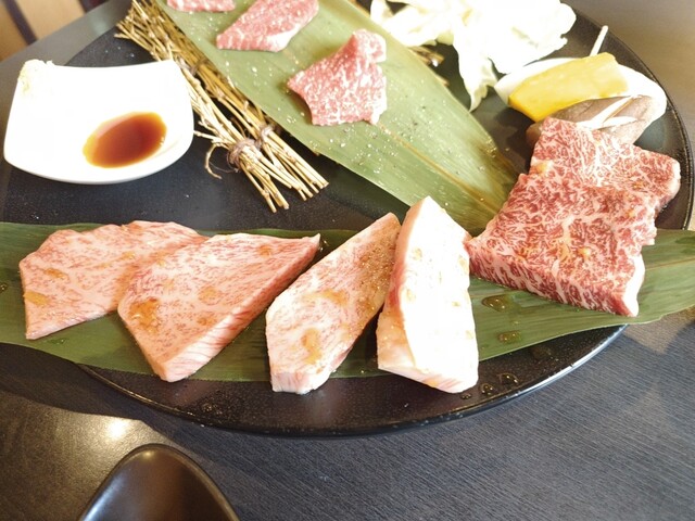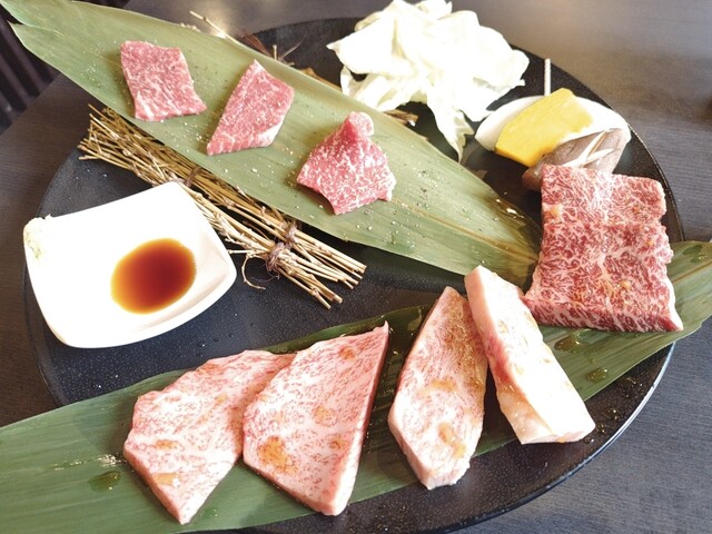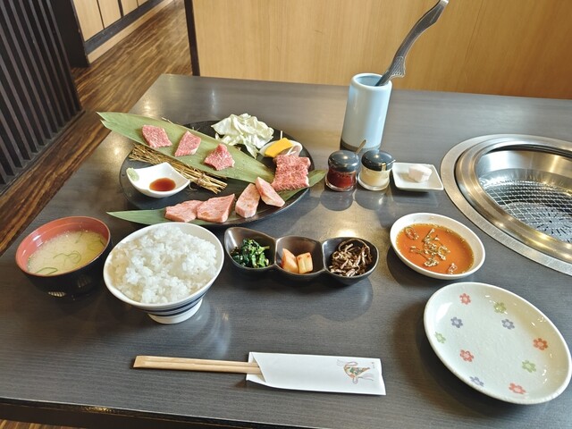 ■赤身盛りランチ1590円が昼のトップメニュー。 ◎ロース·カルビ·ハラミ(他) 山形牛の柔らかい肉質と味を充分味わうべく、卓上の無煙ロースターでレアめに焼いて食べたい。 ◎... 詳細を見る