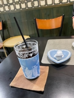 マダムに運ばれて・・・素敵なアイスコーヒータンブラーを見ながらしばしの雨宿りでした。