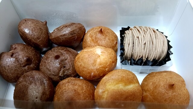[・購入した2点について] ●ミックス 10個入り(カスタード5個+チョコ5個) 567円(税込み価格) ●スペイン栗のモンブラン 1個 270円(税込み価格) 甘さ控え... 詳細を見る