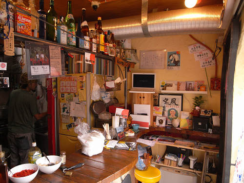 (立ち食い形式のカウンターのみの店内ですが、椅子も設置されています。) |