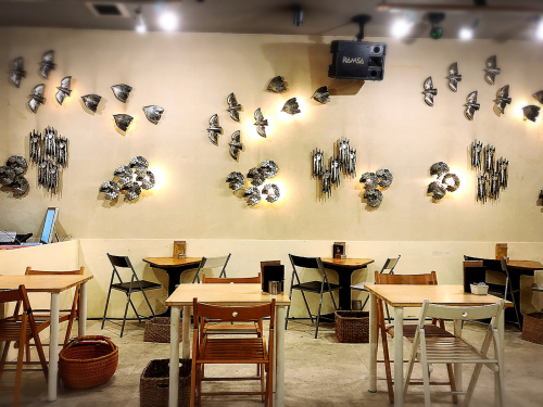 「地域の人、外から来る人、お年寄りや若い人が出会って交流できる場になれば。その間にアートとおいしい食べ物があれば」 との思いを持った店主が もちいどの夢キューブ(奈良市餅飯殿町12 )で創業したお店を 2011年にダンスホールの跡に移転させたお店です。時折展覧会や演劇などがあります。 |