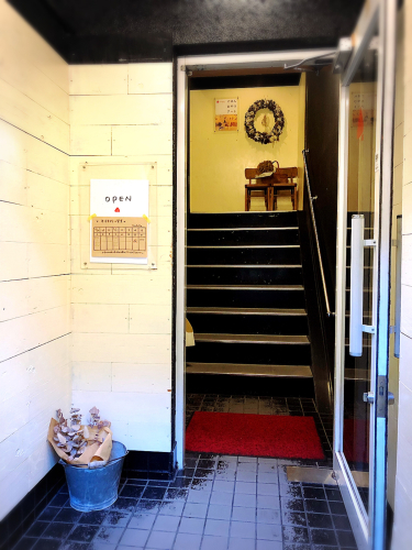 2出口から東向商店街→もちいどのアーケード街→しもみかど商店街と進み、道の左手です。階段を上がり入店です。