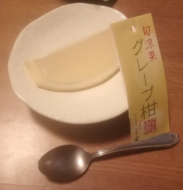 ◎グレープ柑1050円。グレープフルーツ丸々1個丁寧にくり抜いて、中の果実を寒天にしてある。お土産にして自宅...